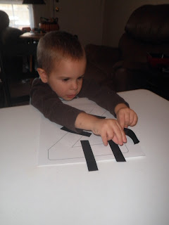 We made Zebra striped Letters Z's this week. We used electrical tape on a Letter Z that I printed it out. Then I helped him cut it out and he glued it on a piece of construction paper.